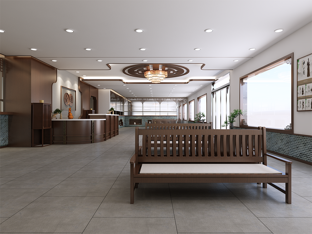 设计理念:中医诊所设计不能只注重外观的奢华而忽视使用功能,或忽视医患的心理需求,而应该站在使用者的角度出发,坚持以人为本的原则,力求创造一个人性化、个性化、智能化的诊疗环境,从而提高就诊率和竞争力。