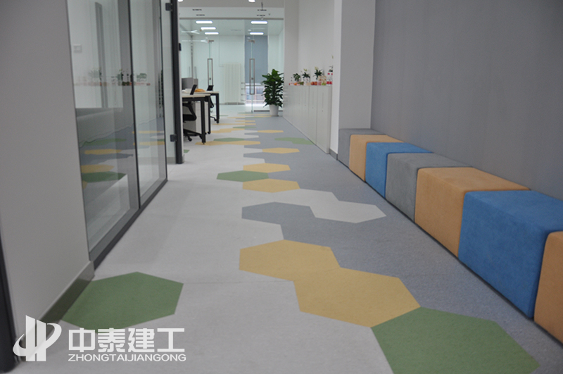 地板采用进口PVC,多色拼花,以多元配色手法带来充满变化的丰盈视觉,并在变化中力求每个个体各自的呼应,呈现出高级的平衡感。整个空间简约时尚、焕发生机。