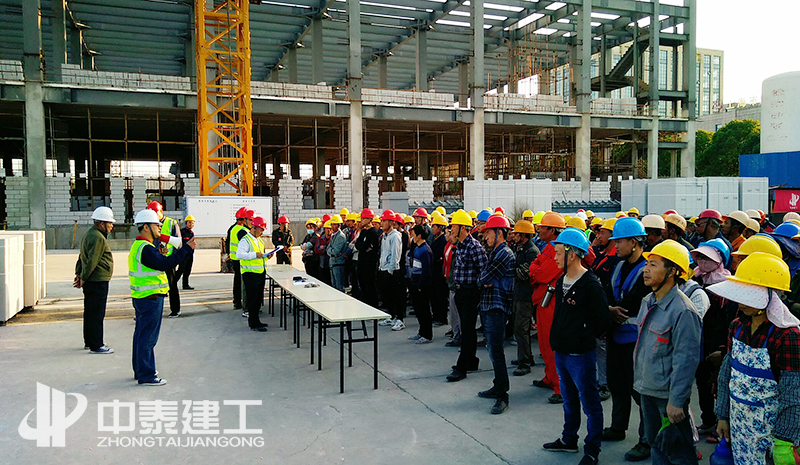培训会上,项目经理郝定宇,安全总监刘国君发表讲话,对现场安全生产文明施工提出要求,先安全后生产,在保证安全的前提下抓进度,不盲目生产,施工人员不违章作业不冒险作业,做好并落实“三宝、四口、五临边”安全防护工作,在施工现场能及时发现并排除安全隐患。