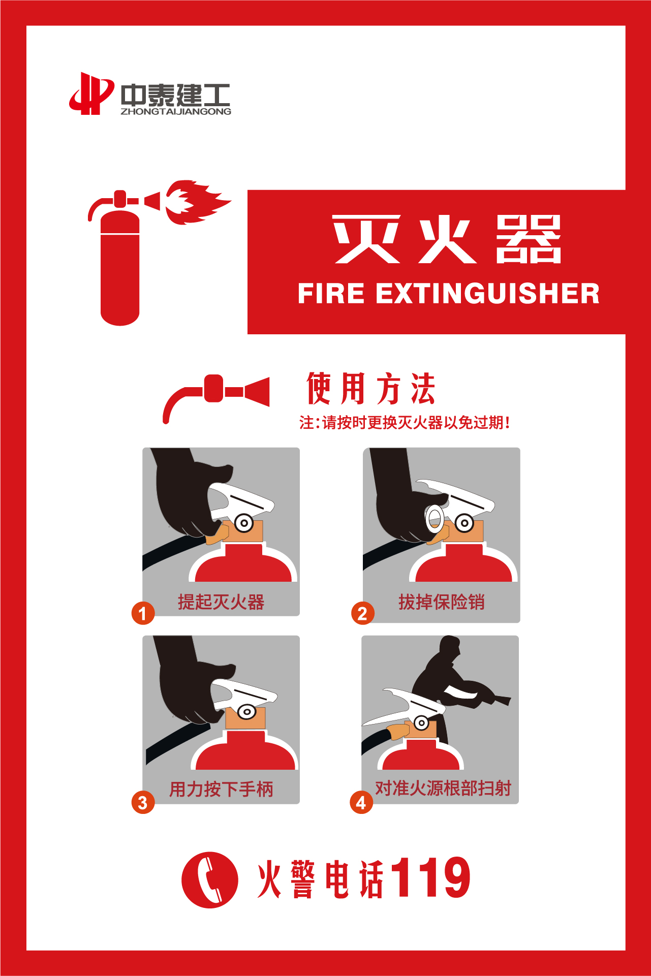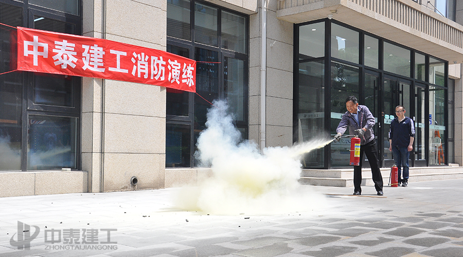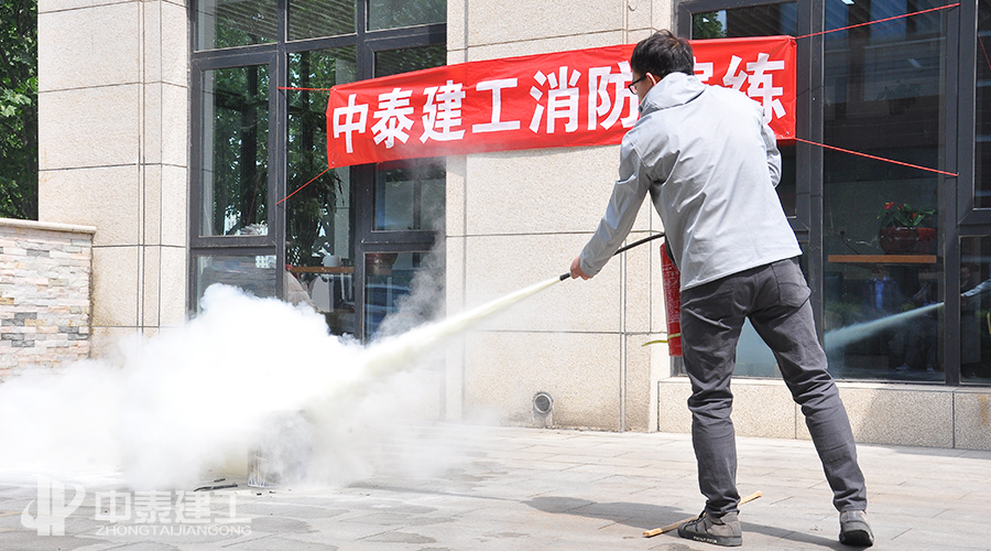下图为世界十大电子游戏平台员工对于常见的干粉灭火器进行演习示范: