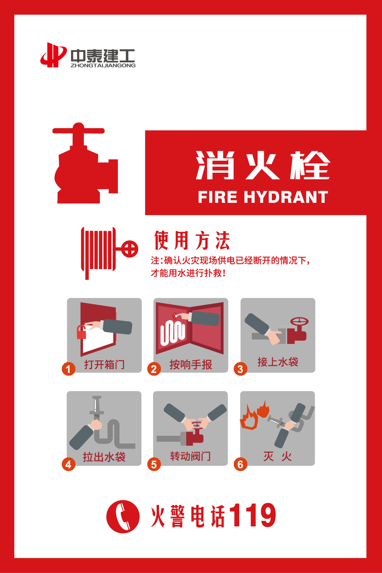 1、打开消火栓门,按下内部火警按钮(按钮是报警和启动消防泵的)。