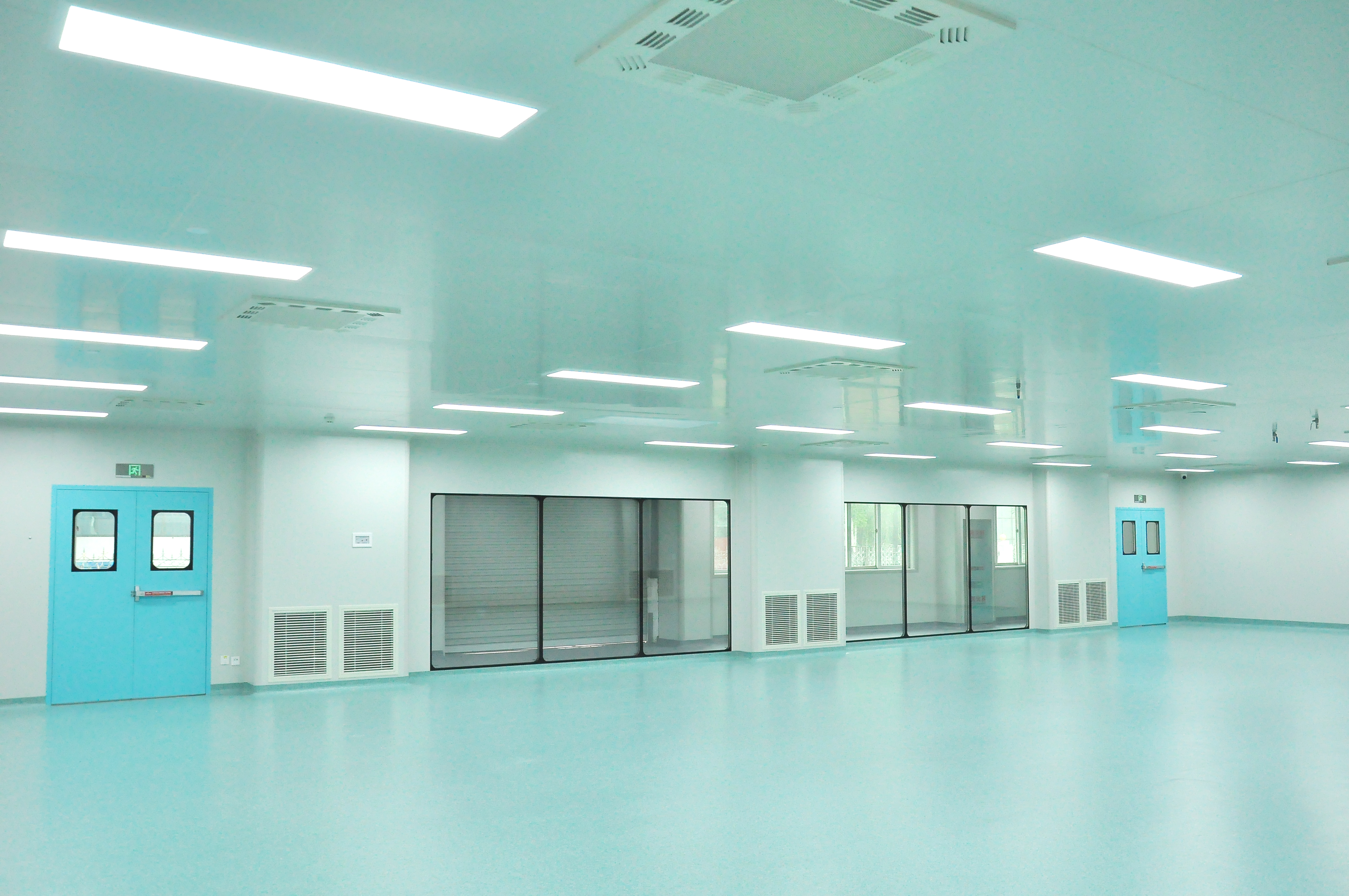 节能环保+质轻减负+高性能阻燃+物理抗菌的设计理念,采用聚乙烯、聚丙烯、聚氯乙烯、聚氨酯等材料与微晶纤维素、木质素等材料制造具有环保、无甲醛、轻质的颗粒原料,通过成型加工制造内饰板材,大大减少塑料对环境污染,实现资源再循环利用。采用高分子抗菌板材覆膜结构,将抗菌物质加入到高分子薄膜中,贴附在内饰板材表面,实现板材的表面物理抗菌,保持超净间的无菌环境。